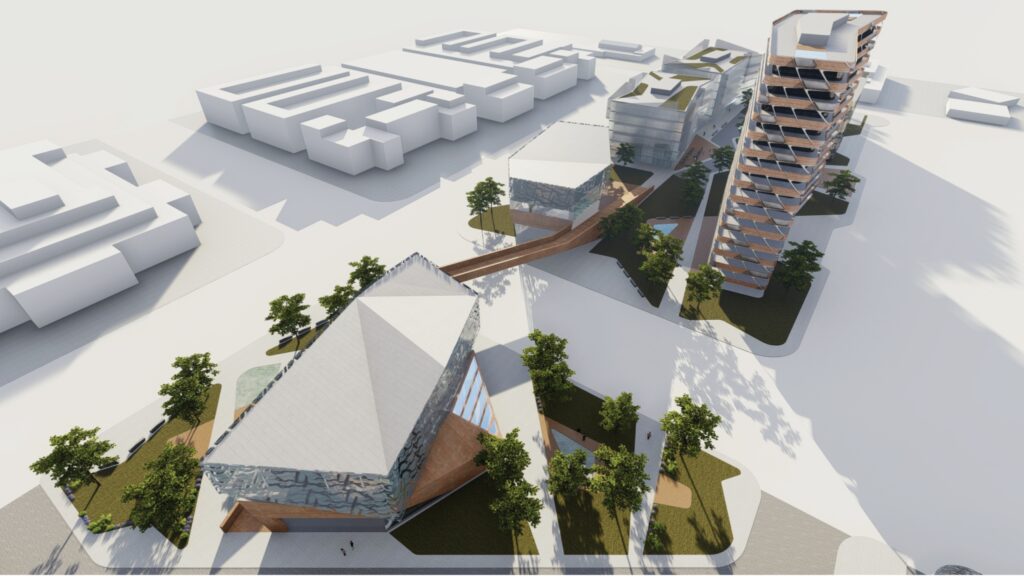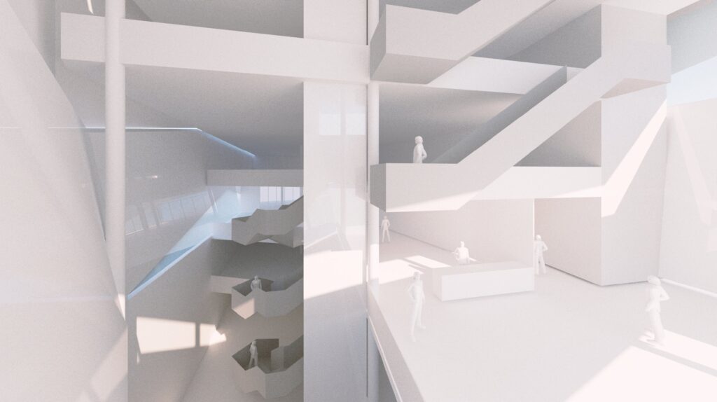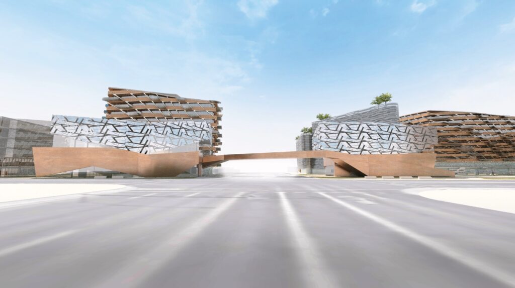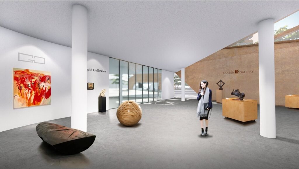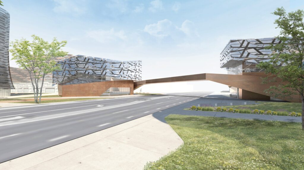 The Museum of the Southwest bridges the two plots of the Old Town master plan in downtown Scottsdale, Arizona, over Drinkwater Blvd. Situated at the key intersection of Drinkwater and Indian School Rd., the 100.000 sq. ft Museum is designed to house several prominent collections of Southwestern native and modern art, intermixed between its two wings. Clad elegantly in glass fractals and stone the color of the Arizona desert, the Museum symbolizes the poignant meeting of earth and sky. The Museum’s two buildings are connected by a bridge over Drinkwater that in turn join the two plots of the master plan, allowing for a seamless and enjoyable pedestrian experience. Inside both wings, dramatic double- and triple-story spaces interlock with the galleries and administrative offices, creating an unforgettable encounter with both contemporary architecture and Southwestern art.