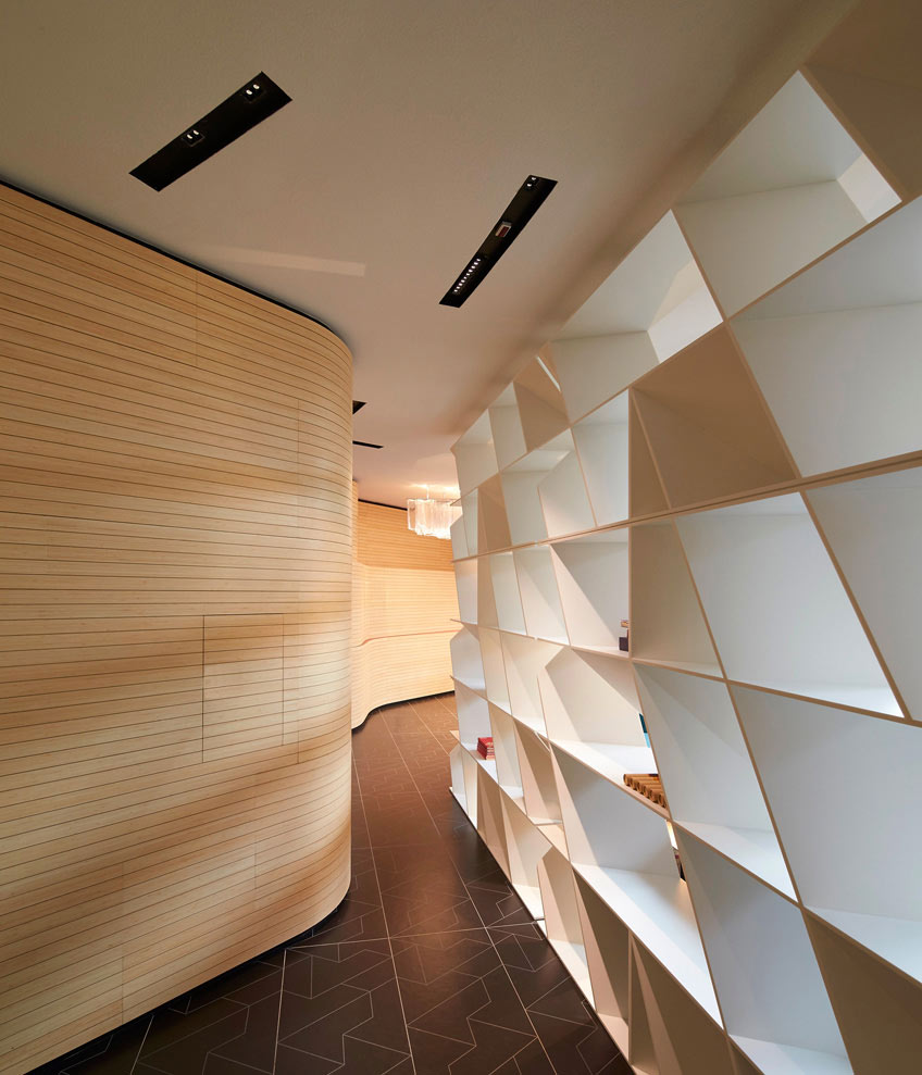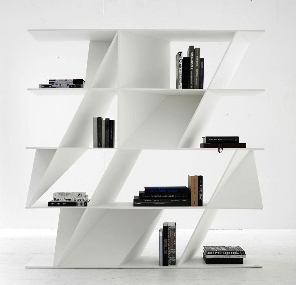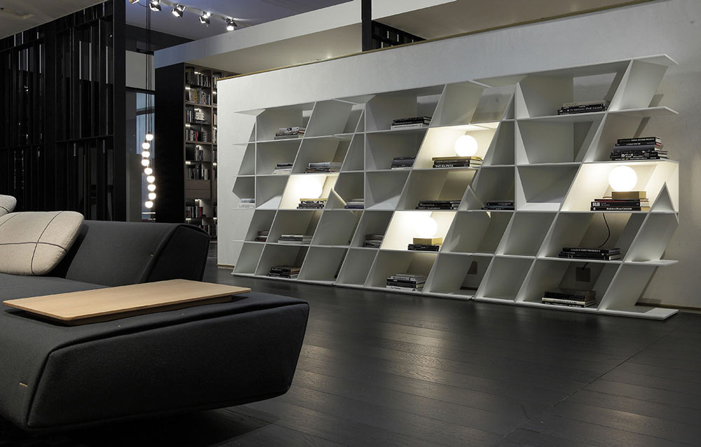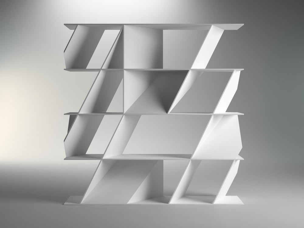 The WEB is a non-standard book shelving system, resembling both the netting of a spider’s web and the plan of a contemporary data network. Made entirely of DuPont Corian, with alternating blocks and voids within a diagonal grid, WEB is not only meant for rows of books, which can be displayed at different angles, but also to exhibit artworks, personal mementos, and electronic devices, which would be framed by the shelving system in a unique way.