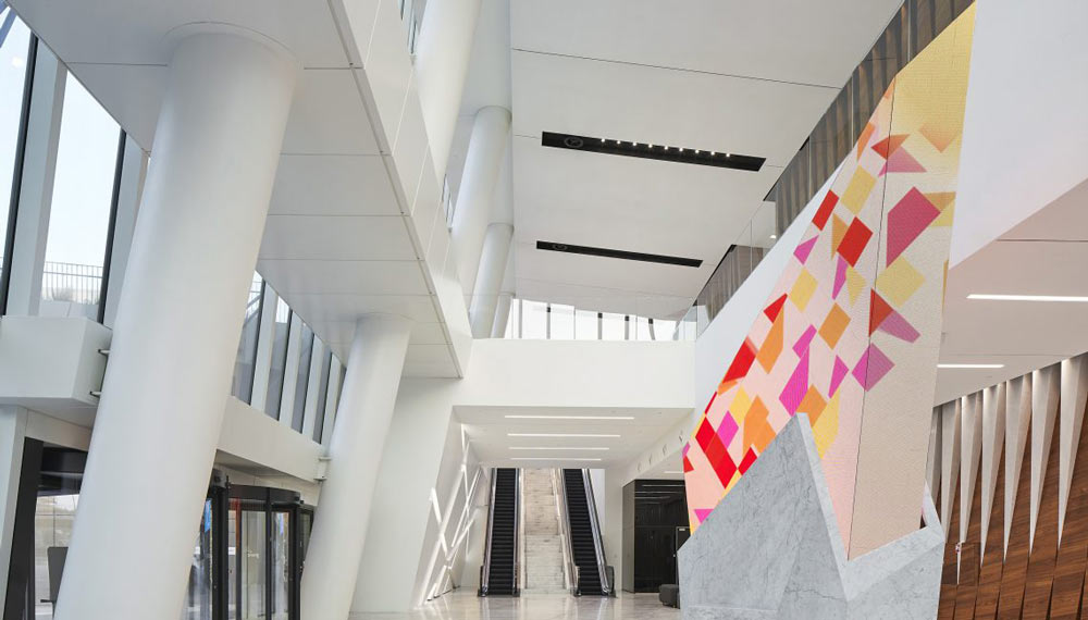 The PwC Tower was created with a focus on cutting-edge architecture, building materials, and environmental sustainability. The building, known affectionately as Il Curvo (“The Curve”) by the Milanese, gently curves over the piazza, embracing it like a shard of a Renaissance dome. Fabricated with 600 tons of steel and glass, the building’s most distinctive element is its ‘crown’, a 40 meter tall structure, which not only contains the building’s maintenance, air conditioning, and rainwater recycling system but also doubles as both a viewing platform and an art gallery for the general public.