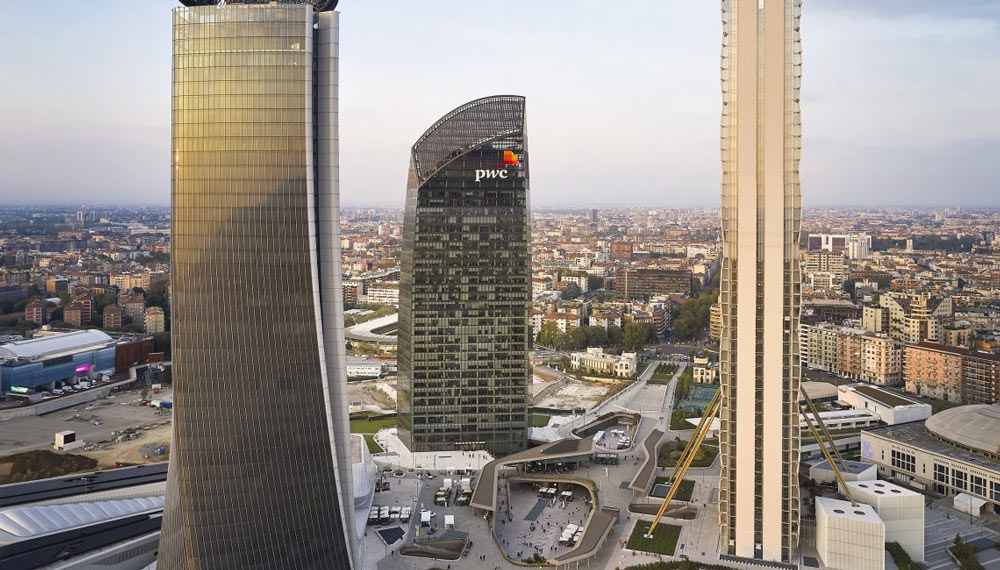 One of the three iconic towers that define the groundbreaking new Milan neighborhood of CityLife, PriceWaterhouseCoopers (PWC) Tower joins Generali Tower and Allianz Tower at the heart of Daniel Libeskind’s winning master plan for the area. With iconic designs by famous architects, each high-rise is a functional work of art that moves boldly beyond superficial extrusions, creating a complex disposition of spaces with exciting forms and breathtaking vistas of the surrounding city.