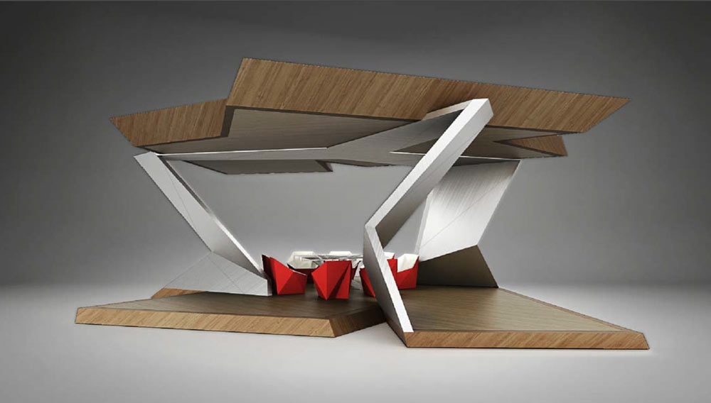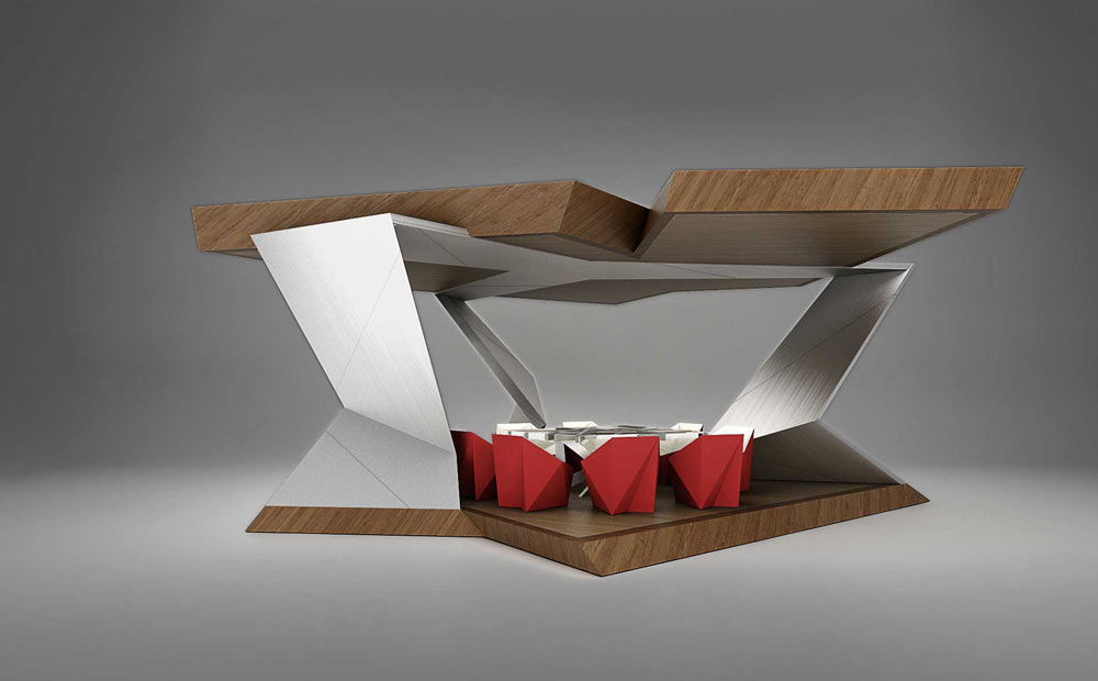 The Libeskinds‘ contribution is the Recreation Pavilion, designed as an ideal outdoor lounge and creative space. The structure offers a spectacular star-shaped podium covered by a 3D-printed roof, which can be customized in various textures and colors. In an ever increasing virtual world the Recreation Pavilion is a sustainable option to re-engage with in real life experiences.